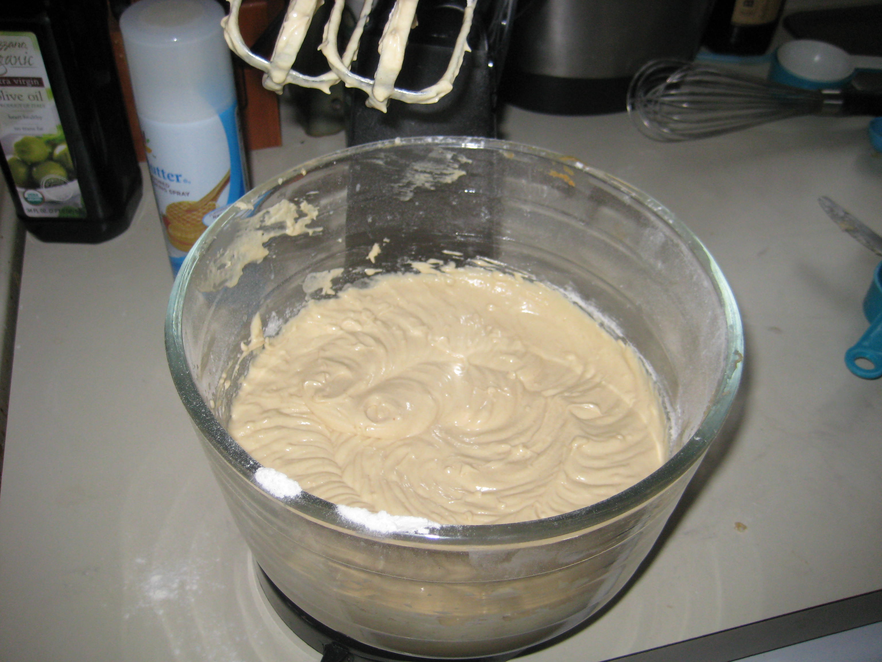 I added the sugar and creamed the mixture together using my electric mixer.  Next, I added the egg and vanilla, then added the hot water to the “buttermilk” I made and began mixing the dry and wet ingredients well, alternating and finishing with the dry.