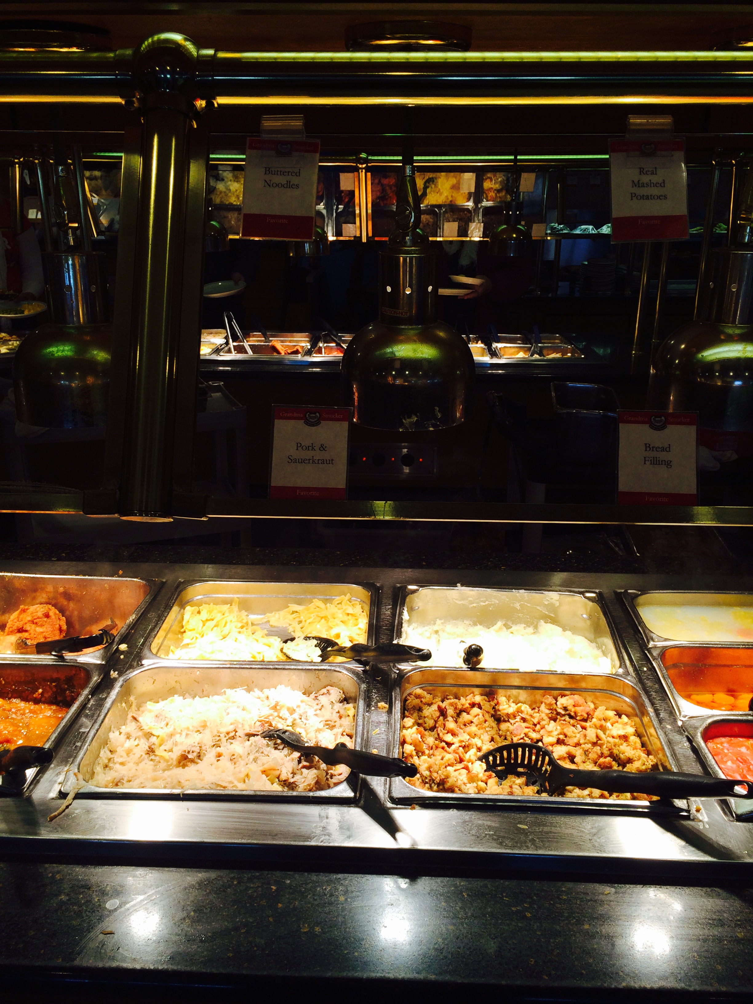 After our farmer’s market visit, we drove just down the road to the Bird-in-Hand Family Restaurant and Smorgasbord. Smorgasbord is a German word for what is essentially a buffet, with more dishes and desserts than you can shake a stick at.