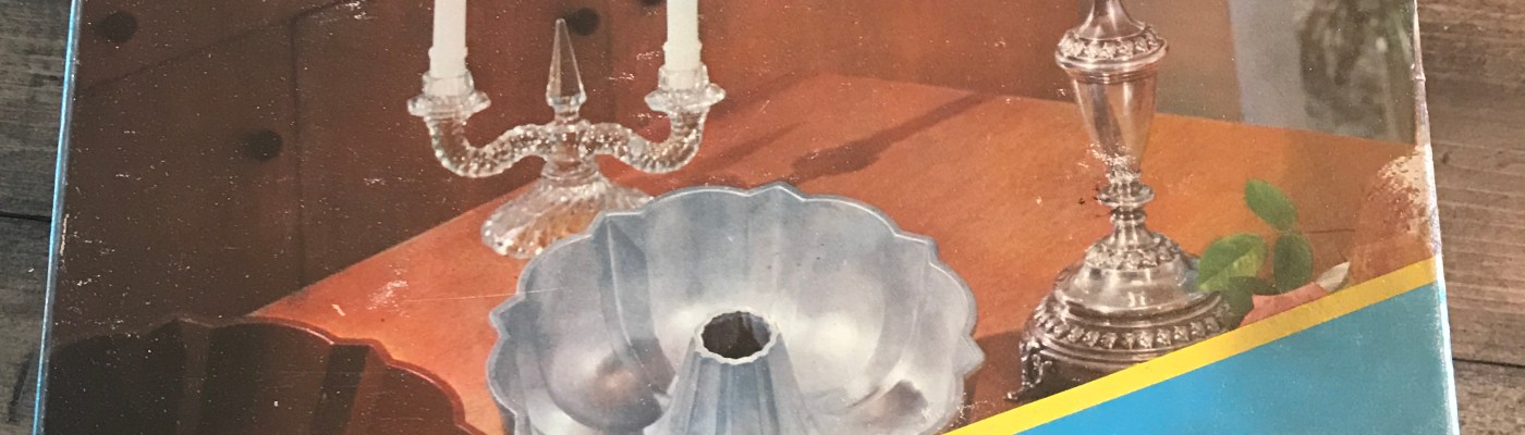This awesome Nordic Ware bundt cake pan was found intact, in the original box, with the original paper liner complete with recipes. It seems to be from the late 1960’s or early 1970’s, and looks like it’s only been used once or twice.