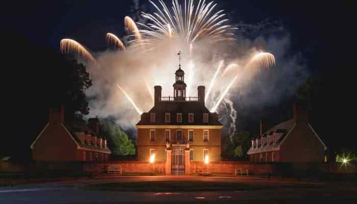 - Independence Day at Colonial Williamsburg, Williamsburg – Readings of the Declaration of Independence take place throughout the day, alongside musical performances, hands-on activities for the kids and an evening fireworks display.