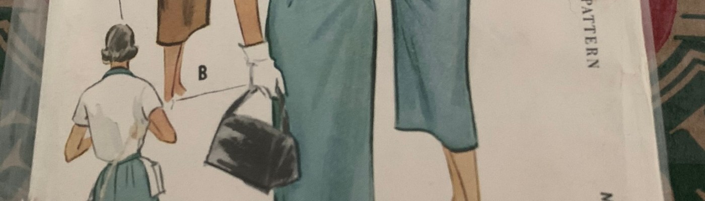 Today’s lovely vintage pattern is McCall’s 9364 from 1953. This pattern is for a sleek misses’ dress, jacket and dickey. The dress has a long, straight skirt, belt and front buttons.