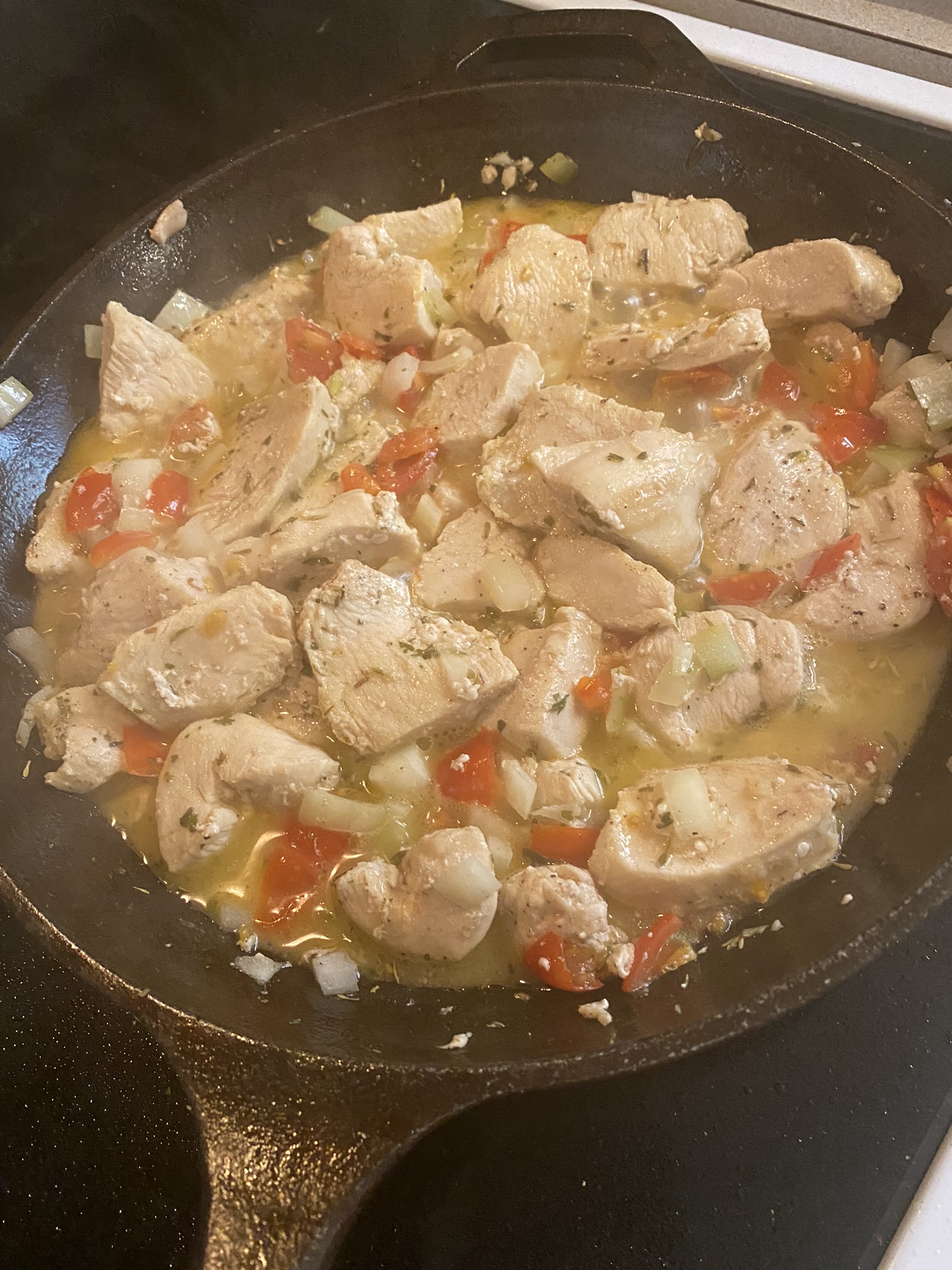 This dish is perfect to throw on the stove for a family get-together. As long as you watch the chicken during the initial cooking process, it can simmer for a while with the remaining ingredients while you enjoy visiting with your guests.