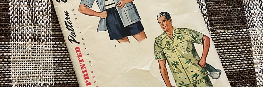 It’s giving mid-century modern vibes. Settle into a lounger by the pool with a cool drink and relax in this mens’ beachwear set from 1950. It would be so fun made in a repeating cute pattern, or with vintage fabric, especially cotton, chambray or seersucker. Grab it now from my Etsy shop!